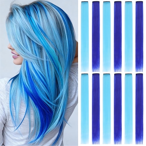 12 Stück rote, weiße und blaue Clip-in-Haarverlängerungen, 56 cm lange, glatte, farbige Haarteile aus Kunsthaar für Kinder, Mädchen und Frauen Cosplay-Modenschau mit farbenfrohen Highlights