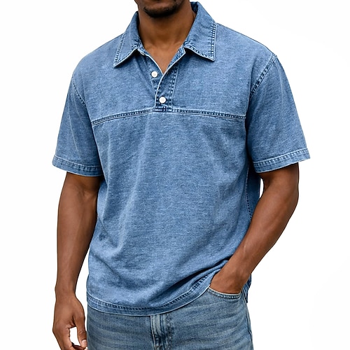 Per uomo Maglietta Maglia Henley Camicia di Jeans Camicia 100% cotone lavaggio acido Manica Lunga Semplice Vintage Streetwear Casual Lavato Manica corta Collo alla coreana Henley Casuale Streetwear