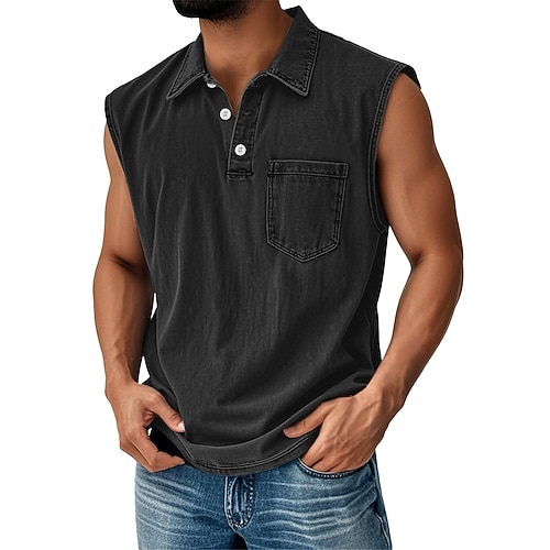 Per uomo Maglietta smanicata Maglietta di cotone Senza Maniche Colletto Polo Estate Primavera Semplice Casual Angosciato Stile Vintage Lavato Casuale Vacanza Streetwear Nero Rosa Viola Maglietta Top