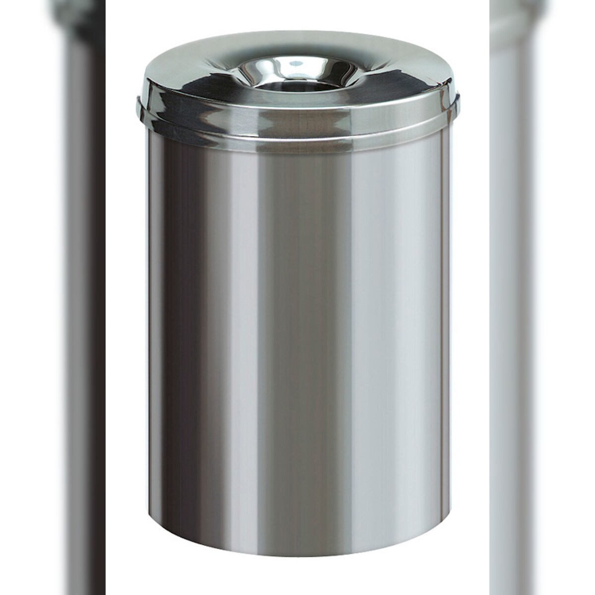 PROREGAL Selbstlöschender Papierkorb & Abfallsammler aus Edelstahl | 30 Liter, HxØ 47x33,5cm | Silber