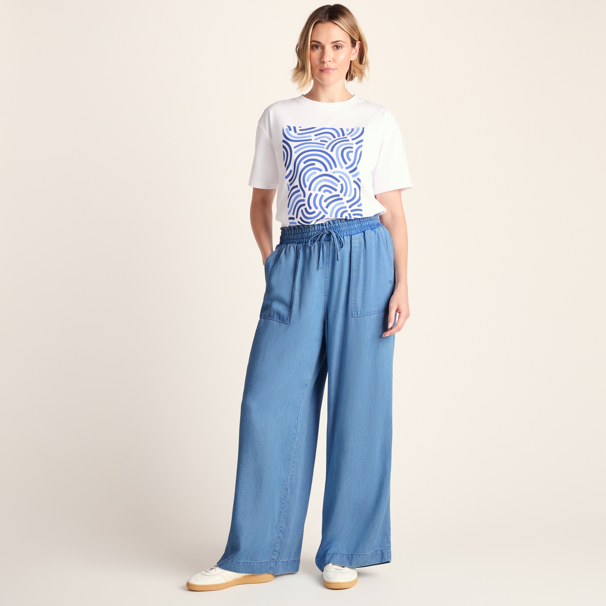 TOG24 Lucy Womens Wide Leg Denim Look Trousers - Faded Indigo - Blue Lyocell - Size 16 UK | TOG24 Sale | Discount Designer Brands