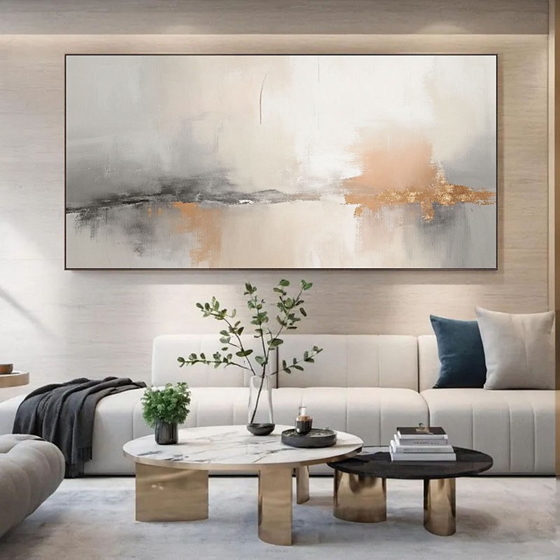 Pittura cielo e oceano dipinto a mano pittura di paesaggio calmante pittura a olio di paesaggio neutro fatta a mano beige chiaro estetico acrilico onda mare pittura pittura di arte minimalista