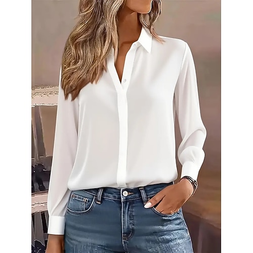 Per donna Blusa Semplice Elegante Quotidiano Manica Lunga Scollo a V Top Regolari Bottoni Nero Bianco Autunno