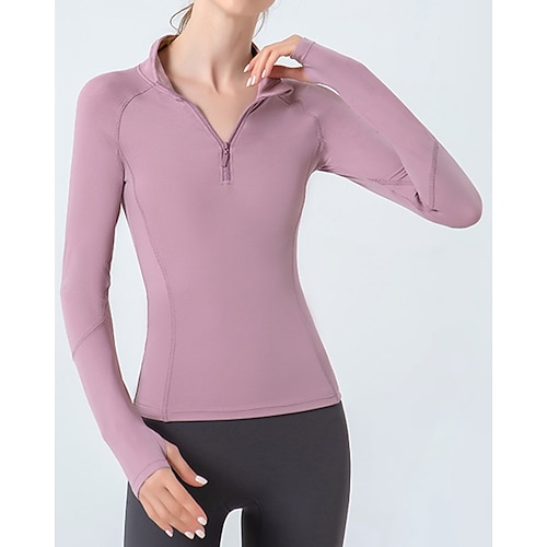Per donna Tinta unita Maglia da tennis Top sportivo Elegante Zip a un quarto Elastico Traspirante Golf Pickleball Yoga Collo alla coreana Top Inverno Rosa scuro Nero Giallo Abbigliamento da tennis