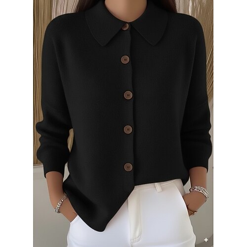 Per donna Cardigan Quotidiano Colletto a Camicia Bottoni Manica Lunga Top Regolari Maglia Lavoro Ferie Rosso bordeaux Nero Primavera Autunno