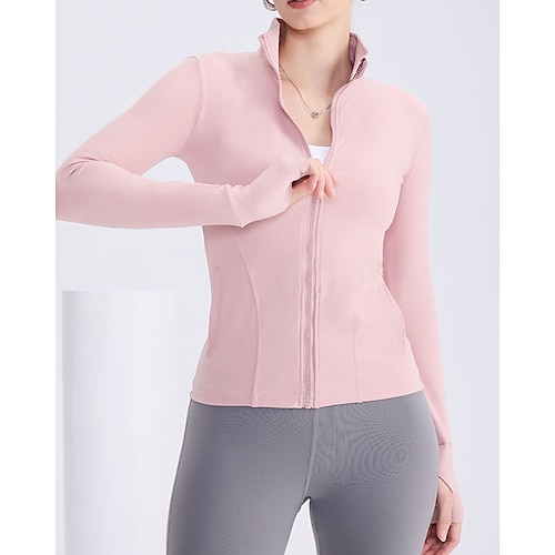 Per donna Felpa con zip Lounge Top Manica Lunga Top Athleisure Autunno Tinta unita Escursionismo All'aperto Viaggio abbigliamento sportivo Abbigliamento sportivo Nero Bianco Cachi