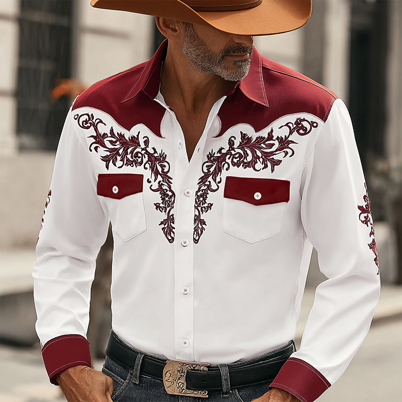 Men's Floral Print Flowers Shirt Western Shirt Cowboy Shirt Long Sleeve Vintage Retro Outdoor Vacation Spring Fall Turndown 3D Print Linen Like Shirt Red Orange Green Gray