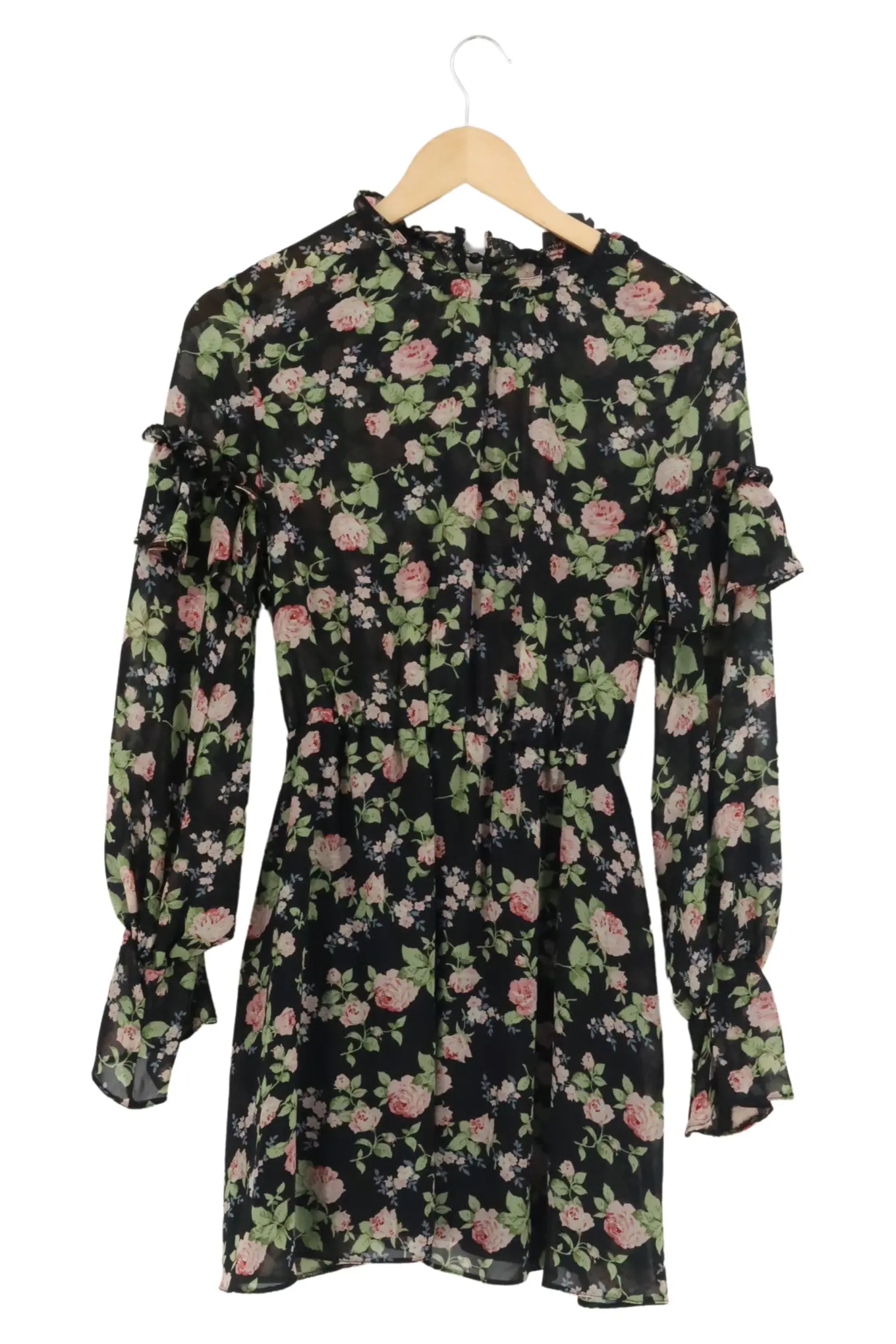 MISSGUIDED Freizeitkleid Gr. 34 Schwarz Floral Vintage Look