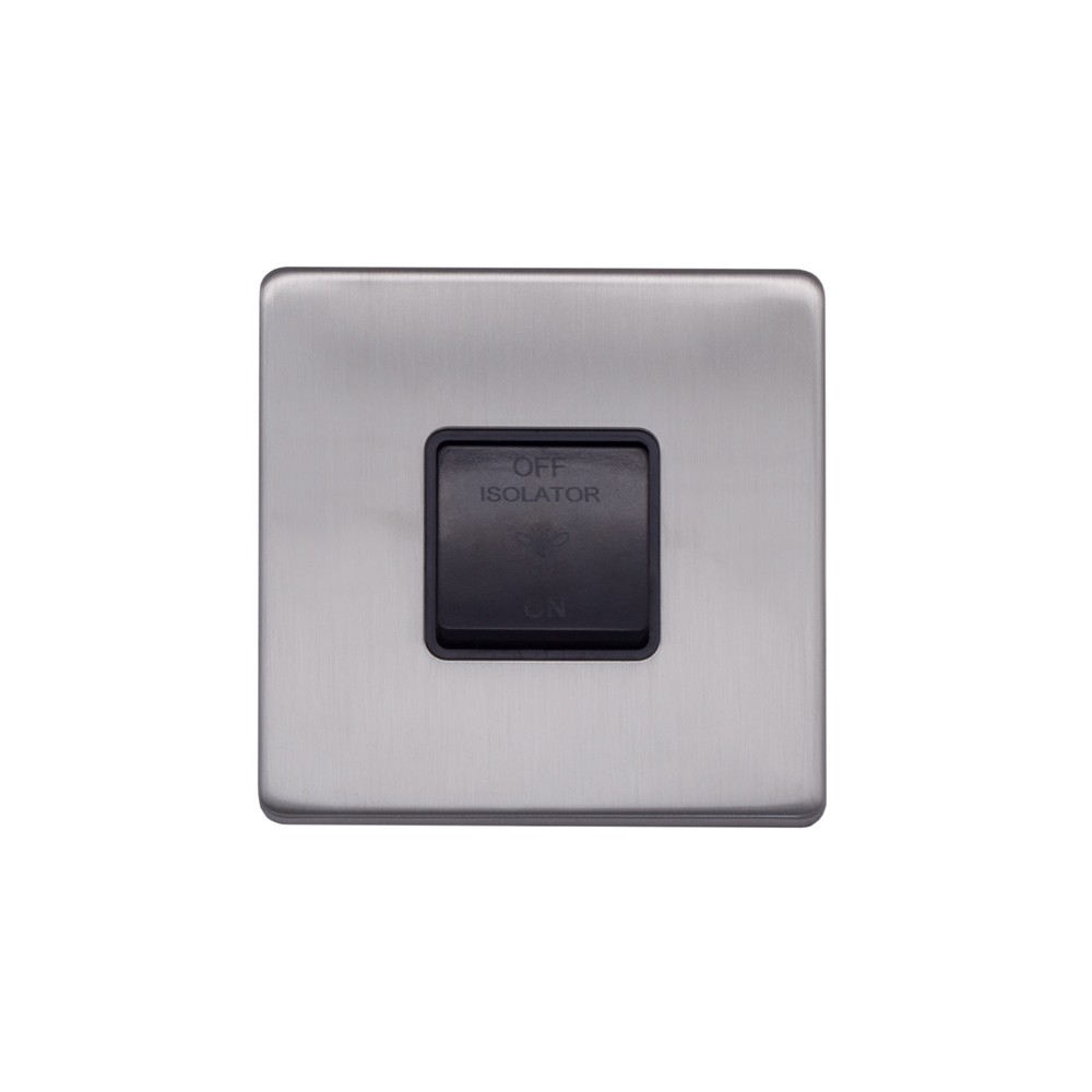 Lieber Brushed Chrome 10A 1 Gang 1 Way 3-Pole Extractor Fan Isolator Switch - Black Insert Screwless - Size: 86mm x 86mm x 2 mm