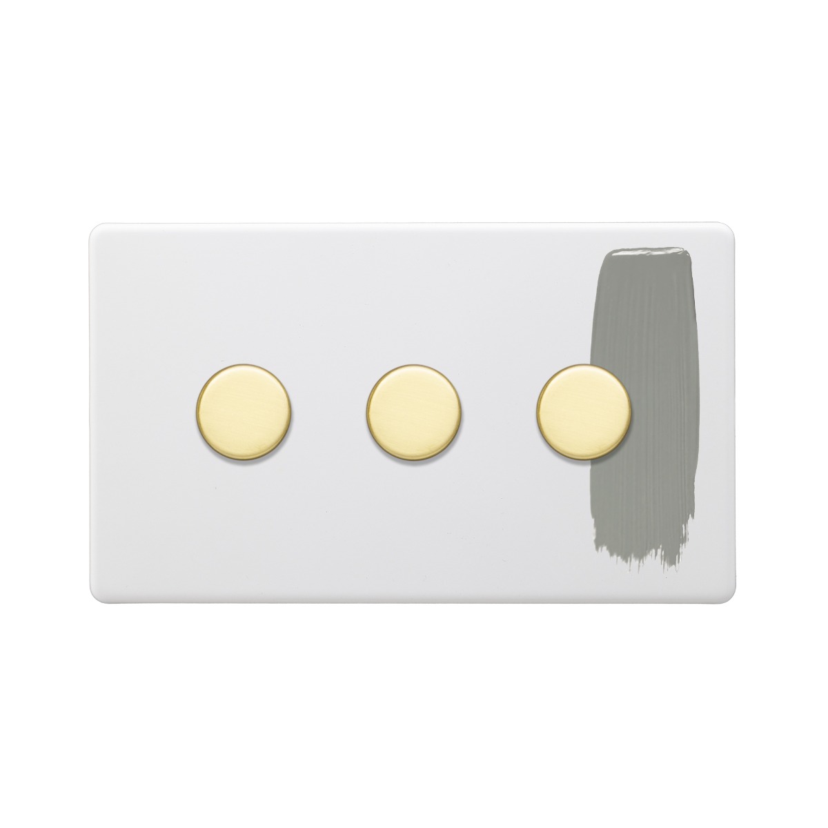 Soho Lighting Primed Paintable 3 Gang 2 -Way Intelligent Dimmer 150W LED (300w Halogen/Incandescent) with Brushed Brass Switch - Size: 86mm x 146mm x