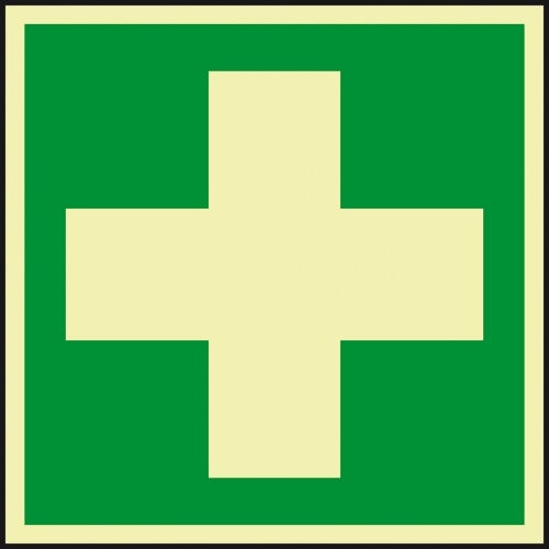 Schild I PERMALIGHT power langnachleuchtend Rettungszeichen Erste Hilfe, Aluminium, 200x200mm, ASR A1.3, DIN EN ISO 7010 E003
