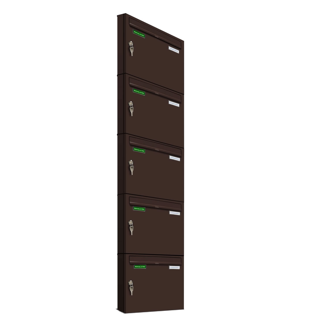 AL Briefkastensysteme 5 x Basic Wand Briefkasten in RAL 8017 Schokoladen Braun für Post A4, wetterfest, Artikelnummer: 431P5EA1P8017