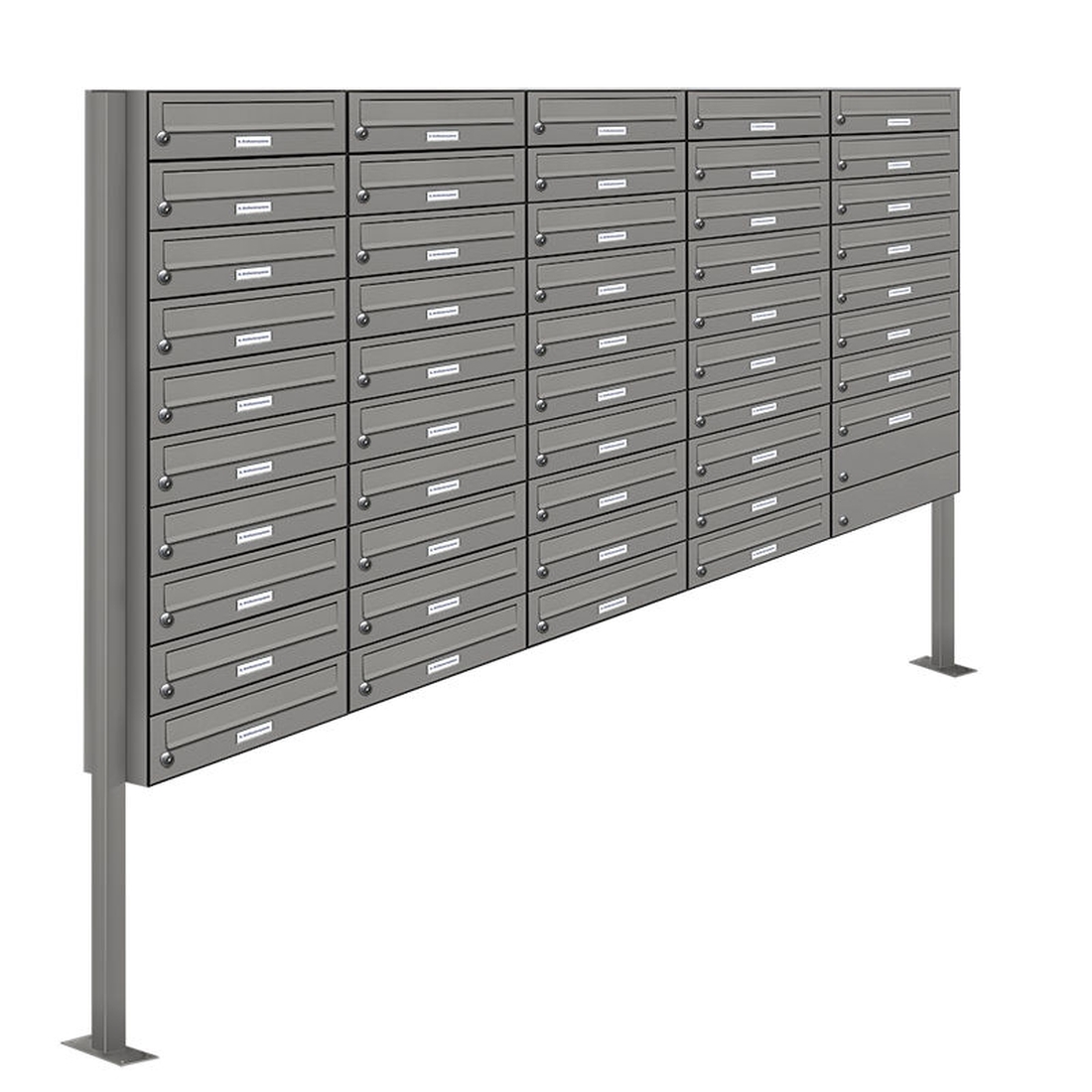 AL Briefkastensysteme 48 Fächer Premium Stand Briefkasten Anlage in RAL 9007 Aluminium Grau, Post A4, robust, wetterfest, Artikelnummer: 132P48S5P9007