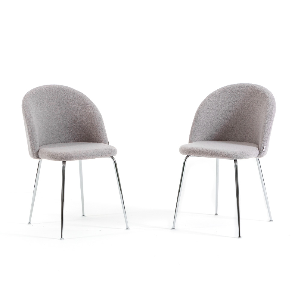 RATTATAN Set aus 2 Stühlen aus Teddystoff für den Innenbereich,mit Metallbeinen,gepolstert für Küche,Esszimmer,Bar,Restaurant –Sara Teddy–Hellgrau/Silber