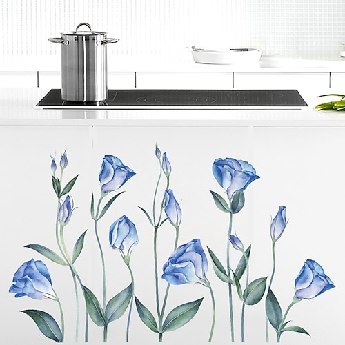 Adesivo murale a forma di tulipano, motivo floreale blu, decalcomania murale rimovibile per camera da letto, sala da pranzo, soggiorno, arredamento per la casa, sfondo botanico creativo, arte,