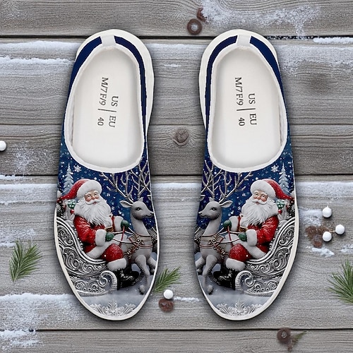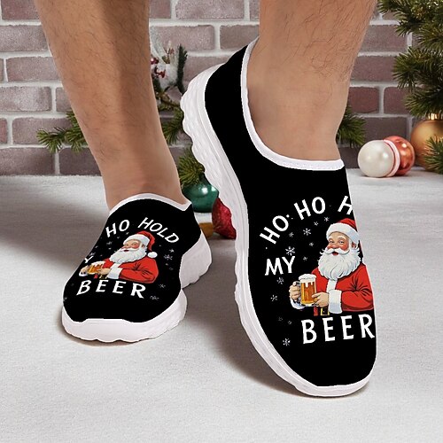 Weihnachtsschuhe für Herren mit Weihnachtsmann-Bier-Motiv – lustige, atmungsaktive Slip-on-Sneaker mit dem Aufdruck „Ho ho, halt mal mein Bier", lässige Festtagsschuhe für Partys und als Geschenk