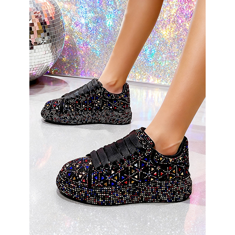 Women's Rhinestone Chunky Platform Sneakers - Sparkly Nightlife Party Fashion Trainers with Glitter Sole