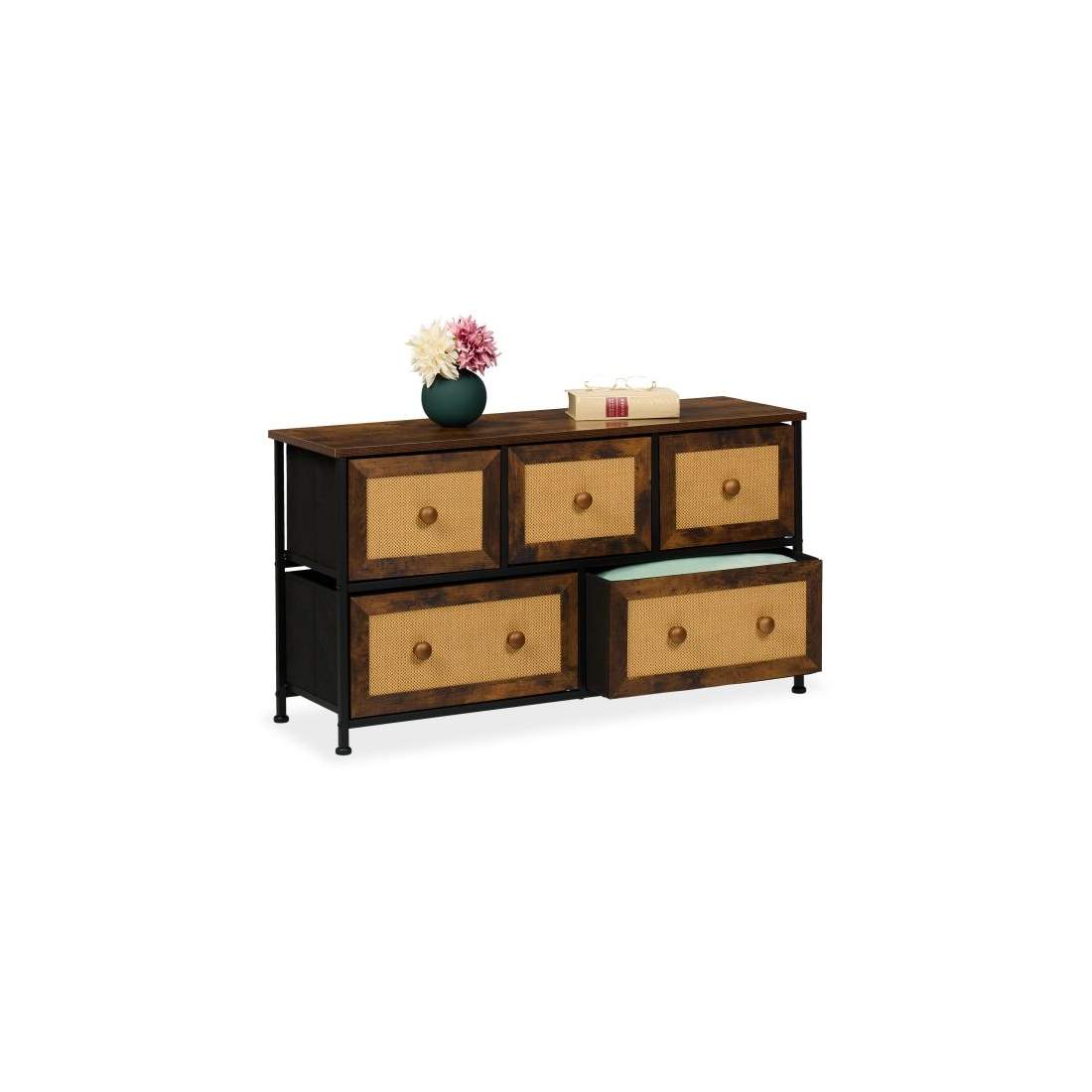 Kommode med 5 skuffer i rattan look