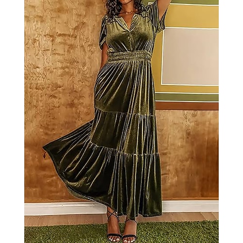 Per donna Abito Midi Abito di Natale Abito in Velluto Vestito da Festa Abito da Cocktail Elegante Moderno Festa serale Feste Compleanno Vestibilità regolare Semplice Manica Corta Scollo a V Vino