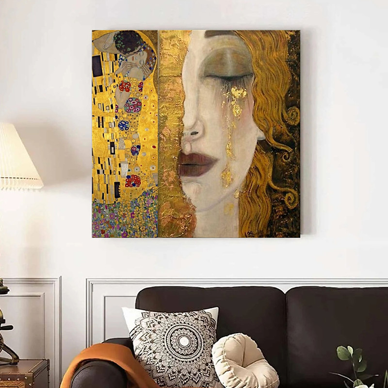 Mintura Handmade Portrait of Adele Bloch-Bauer Oil Painting On Canvas Wall Art Decoration Gustav Klimt Famous Picture For Home Decor Rolled Frameless Unstretched Painting