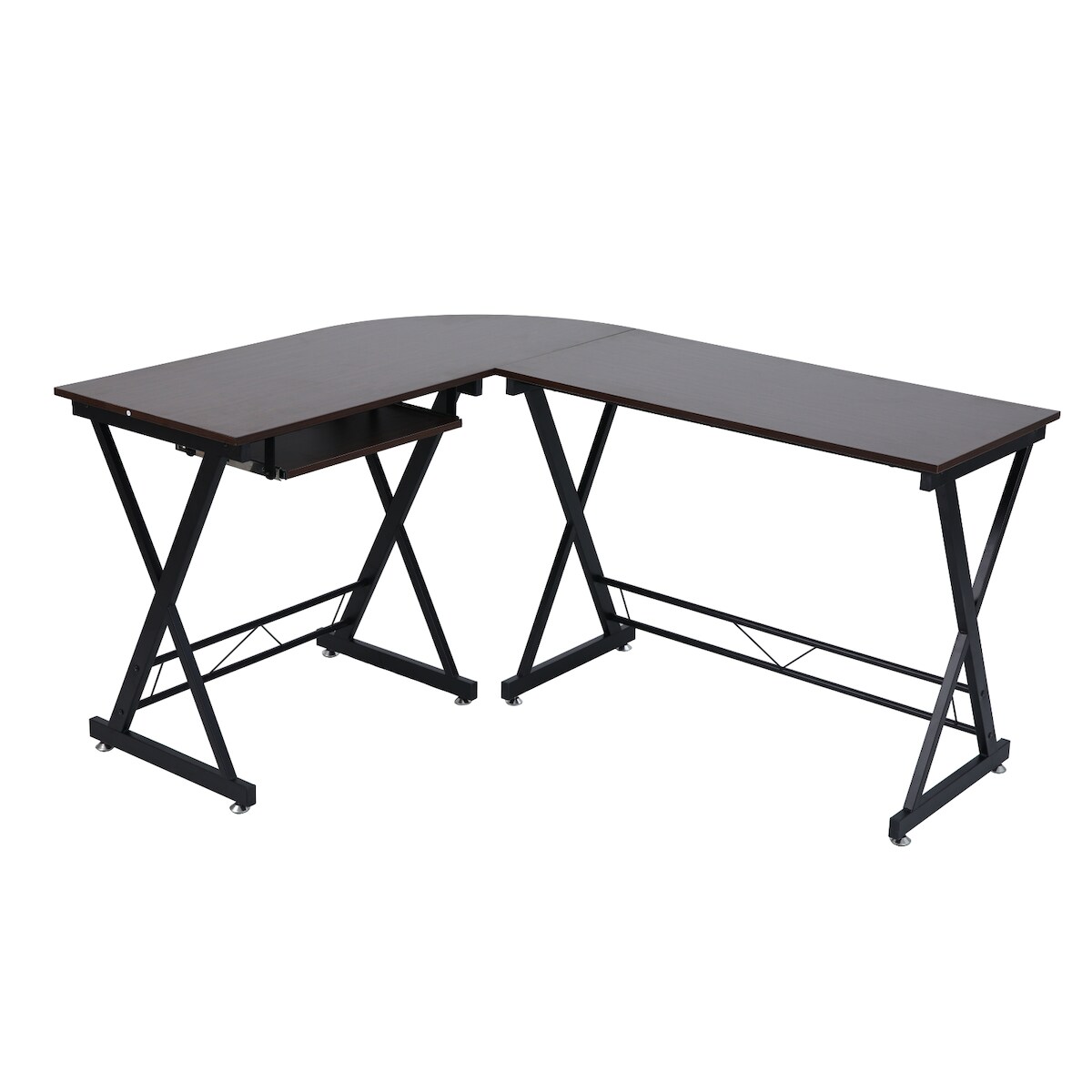 SVITA ECKHART Eckschreibtisch Nussbaum-Optik schwarze Metall-Beine Computertisch Tisch