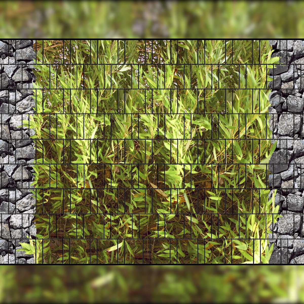 zaun|zu® Sichtschutzstreifen Bambus & Bruchstein - Bedruckter Sichtschutz 2,5m x 1,8m