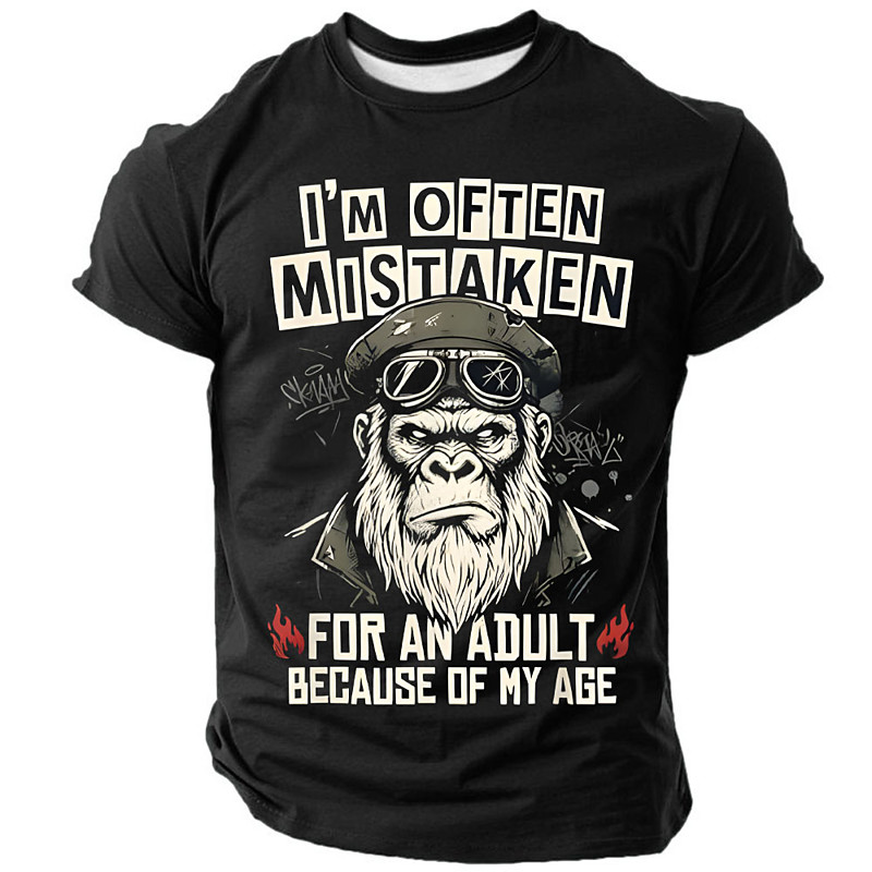 Im Often Mistaken For An Adult Because Of My Age Funny Gorilla Men Black Short Sleeve T Shirt Sarcastic Graphic Tee Clothing Apparel S M L XL XXL XXXL