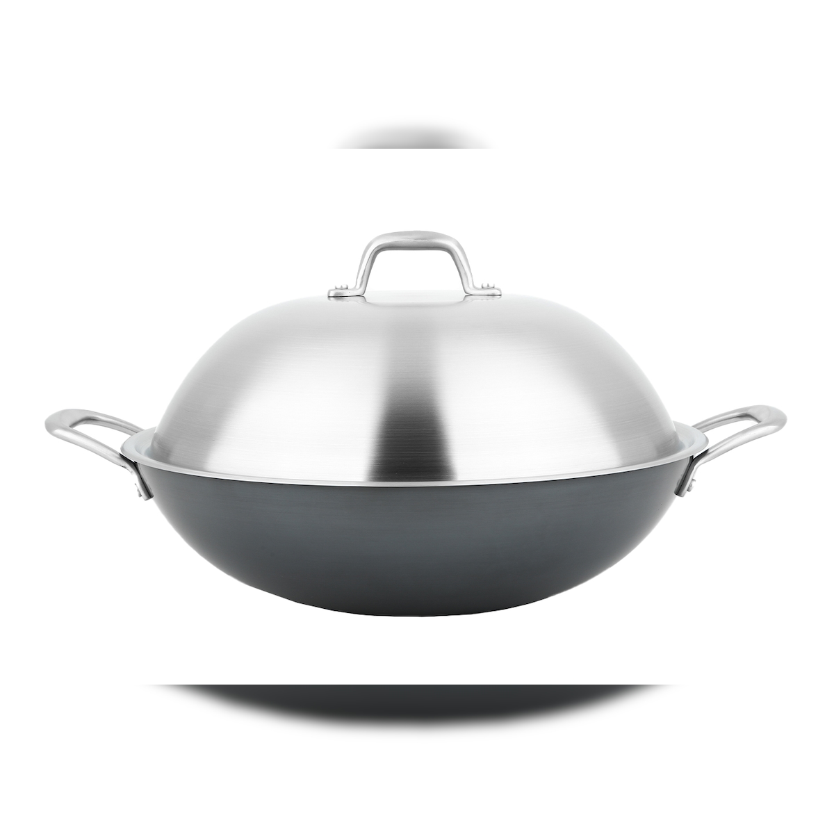 Carl Schmidt Sohn, ALTENA Ø 36 x 10cm Schmiedeeiserne chinesische Wok-Pfanne mit Edelstahl-Deckel
