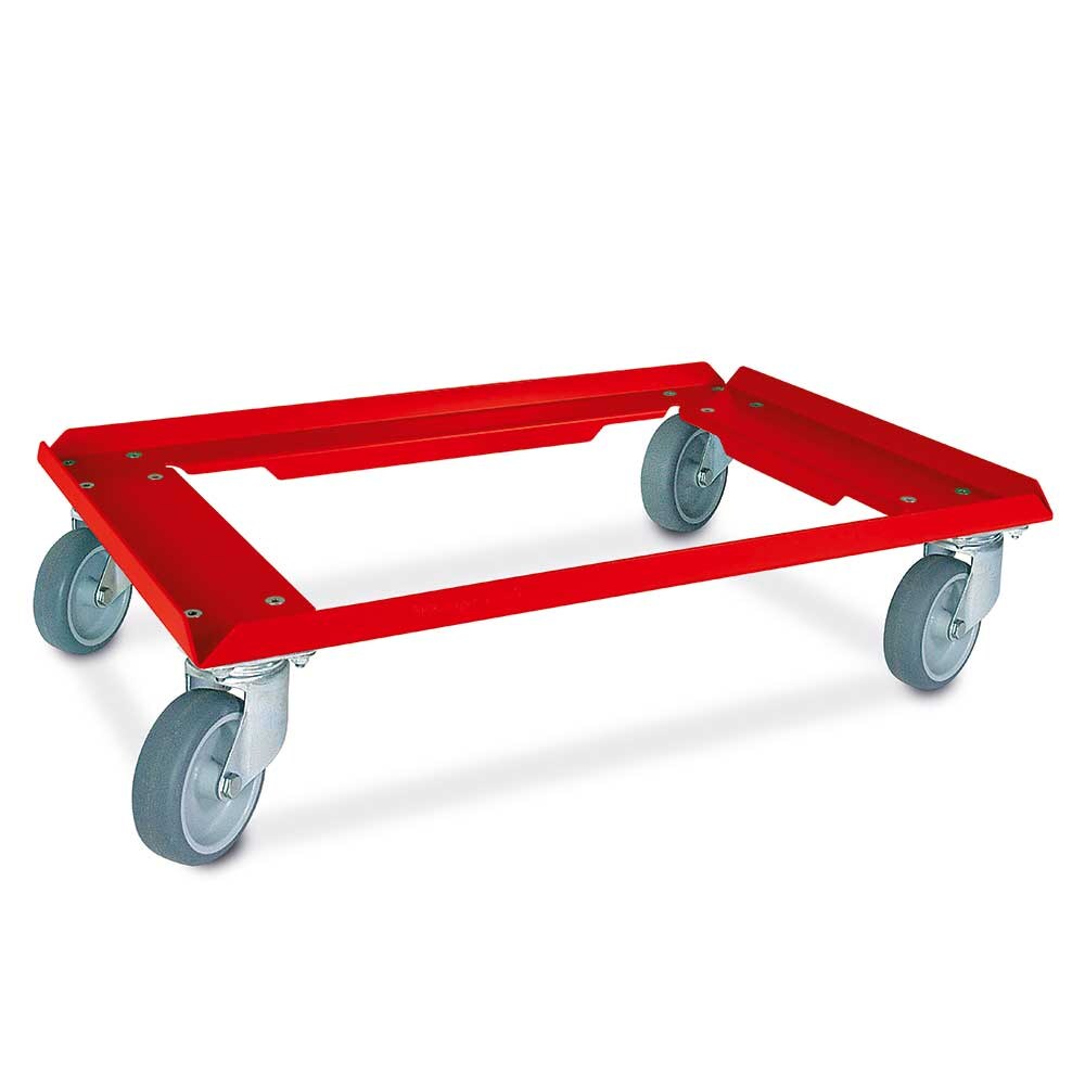 BRB Logistikroller/Kistenroller Aluminiumdeck in Farbe rot kunststoffbeschichtet, für Behälter 600x400 oder 2x 400x300 mm
