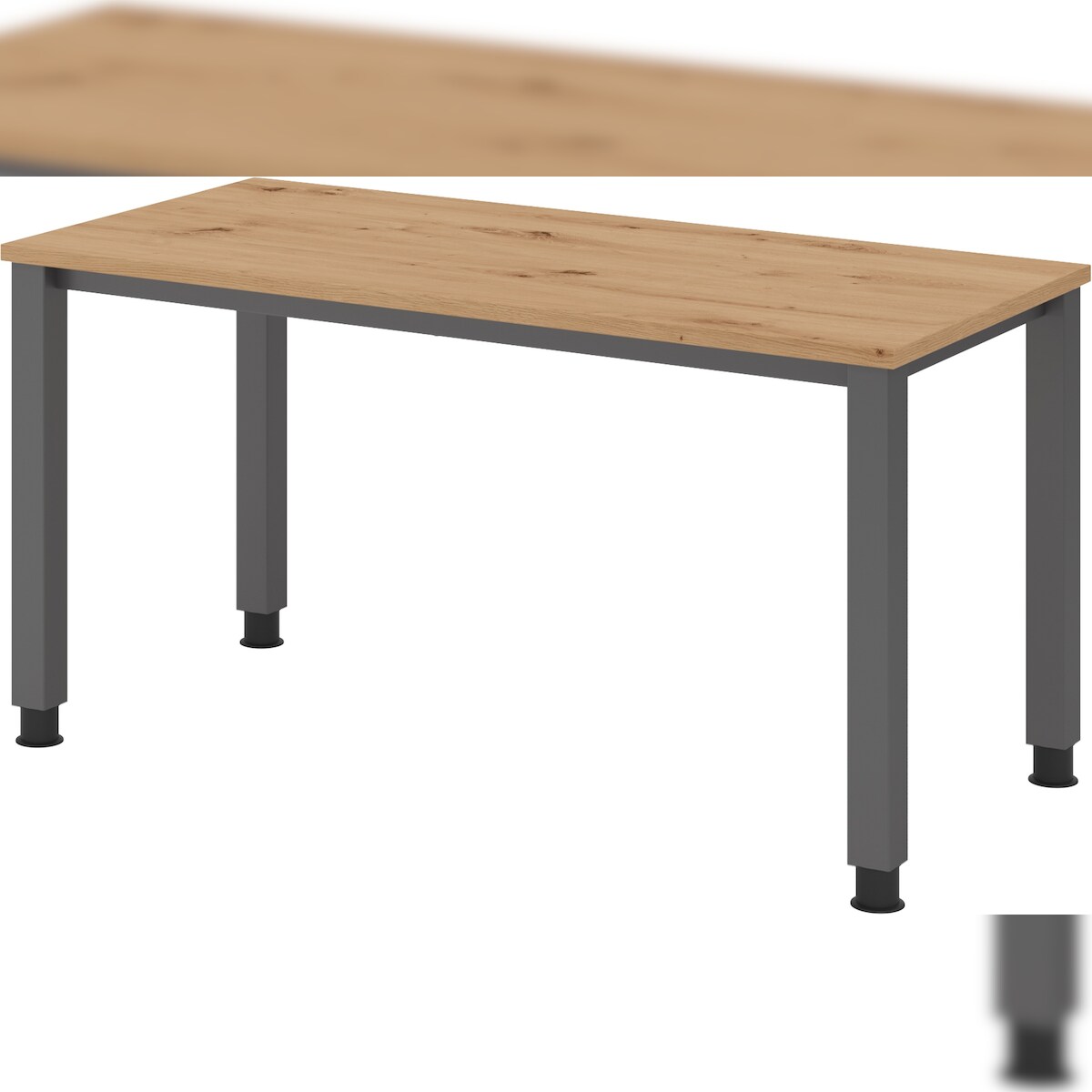 bümö manuell höhenverstellbarer Schreibtisch 140x67 cm in Asteiche, Metall-Gestell in Graphit - PC Tisch höhenverstellbar & klein, Mini-Homeoffice