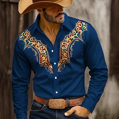 Per uomo Etnico Floreale intricato Fiori Camicia Camicia Western Camicia da cowboy Manica Lunga Vintage Retrò All'aperto Casuale Abbigliamento da lavoro Primavera Autunno Collo ripiegato Due tasche