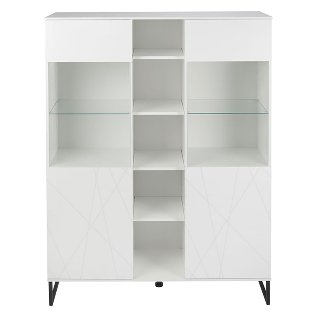Akai Vitrinenschrank 2 Türen weiß Hochglanz.