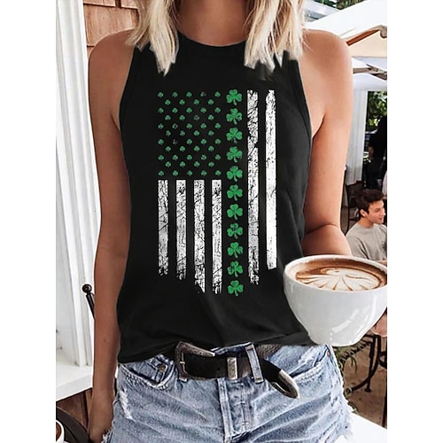 Maglietta da donna per il giorno di San Patrizio grafica bandiera trifoglio vintage tropicale alla moda senza maniche colletto rotondo tops regolari quotidiana blu nero verde estate primavera