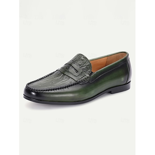 mocassini slip-on da uomo in pelle verde, comoda suola ammortizzata, design elegante per invitati a matrimoni, eventi formali e celebrazioni