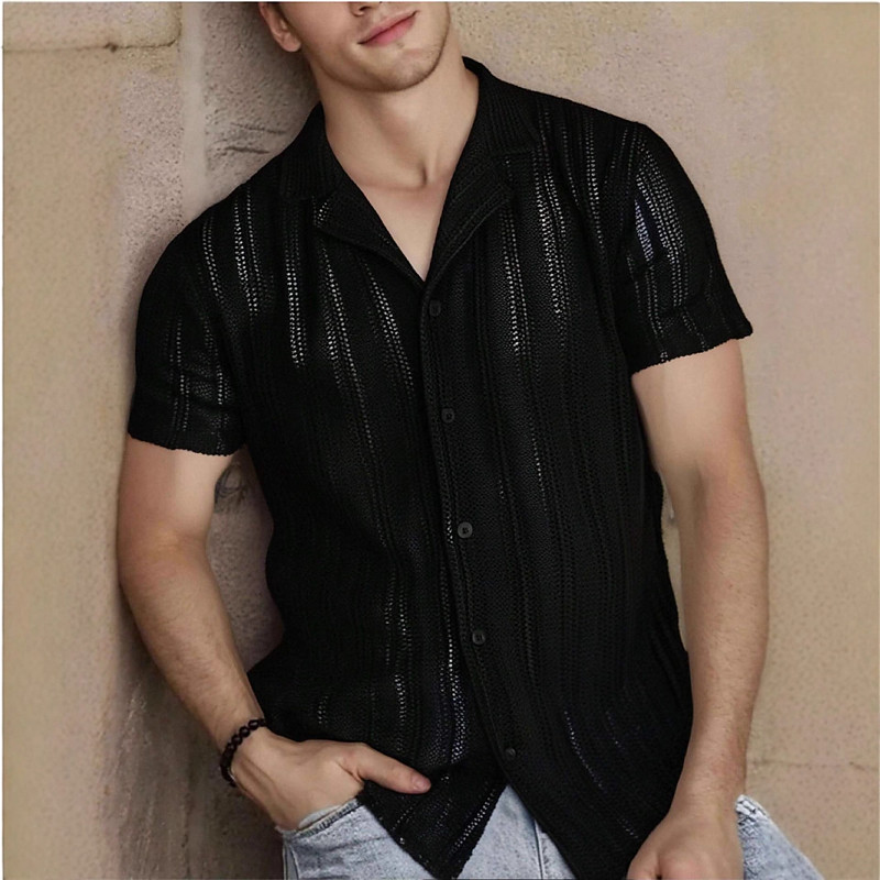 Men's Shirt Casual Shirt Button Up Shirt Black White Camel Apricot Short Sleeve Plain Textured Cuban Collar Casual Streetwear Jacquard Clothing Apparel Elegant Fashion Casual