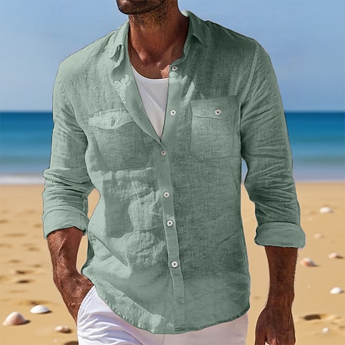 Per uomo Camicia Camicia di lino Camicia Estiva Abbigliamento da spiaggia Camicia con Bottoni Camicia cargo Tinta unica Vacanza Ferie Bianco Blu Verde Cachi Manica Lunga Bavero Estate Abbigliamento