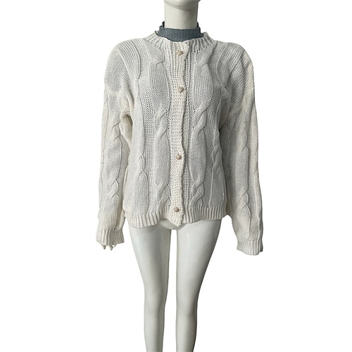 Per donna Felpa Cardigan Streetwear Casual Tinta unica Treccia Colletto a Camicia Tasca Bottoni Lavorato a maglia Manica Lunga Top Regolari Maglia Quotidiano Ferie Uscire Nero Bianco Autunno Inverno