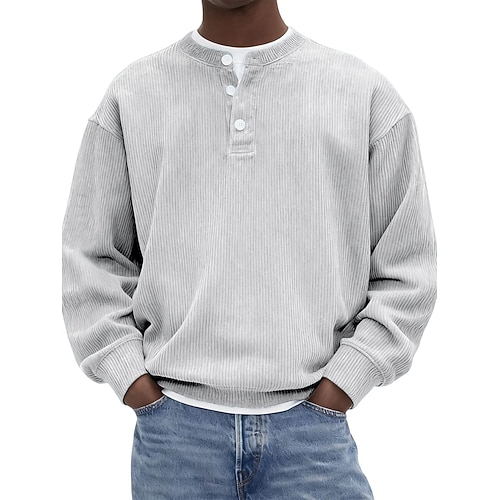 Per uomo Camicia di Velluto a Coste Maglia Henley Maglietta Manica Lunga Tinta unica Semplice Moda Designer Casual Cardigan con Bottoni Henley All'aperto Casuale Quotidiano Autunno Inverno Tutte le
