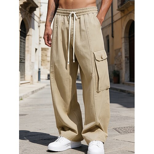Per uomo Pantaloni Cargo Pantaloni Pantaloni Larghi Coulisse Elastico in vita Multi-tasche Tinta unica Antivento Comodità Lunghezza al ginocchio Quotidiano All'aperto Ferie Vacanza Streetwear Verde