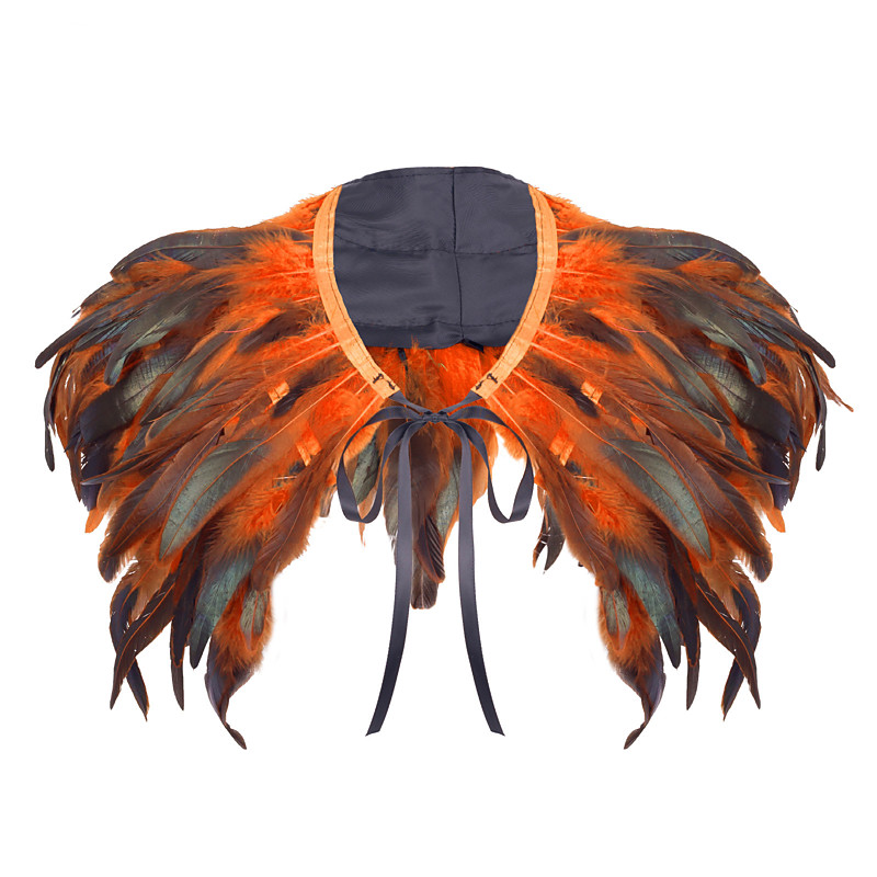 Women's Red Feather Cape Shawl with Ribbon Tie, Gothic Vampire Devil Costume Accessories, Natural Feather Shrug Epaulettes