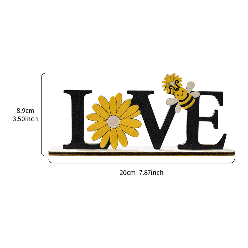 1PC A Wooden Love Letter Decorative Piece With A Bee Flower Shape A Creative And Cute Letter Home Decoration Small Piece A Festival Celebration Home Desktop Decoration Letter Piece