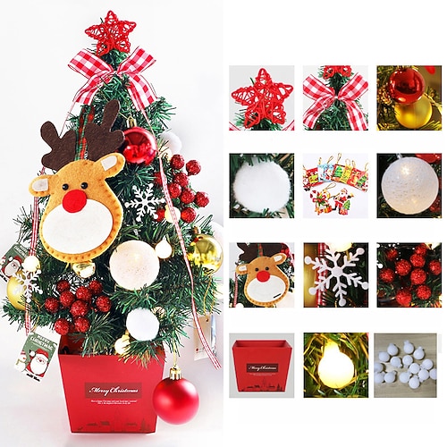 mini ornamento dell'albero di natale fai da te 50-60 cm decorazione dell'albero di natale del desktop ornamento dell'albero di natale con luci abito rosso oro decorare luci di natale