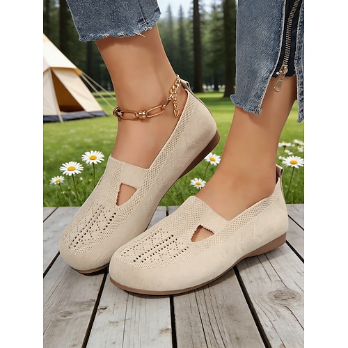 Per donna Scarpe da ginnastica Slip-On Scarpe comfort Giornaliero Piatto Punta tonda Di tendenza Informale Comoda Footing Tessitura volante Mocassino Nero Blu scuro Beige
