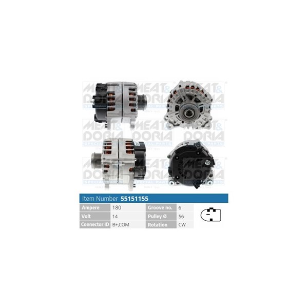 Laturi 14V 180A Meat & doria 55151155 - audi a6 allroad c7, a6 c7, a6 c7 avant, a7 sportback - OE 059903018T