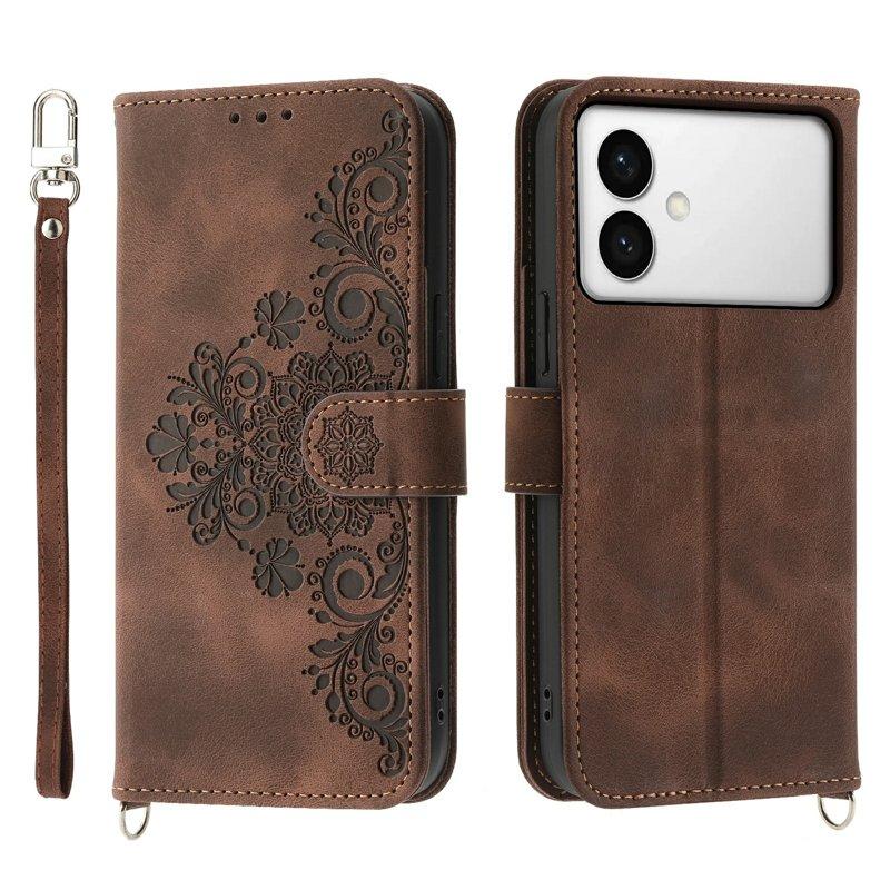 Samsung Galaxy S26 Edge Fodral Konstläder Blommönster - Brun