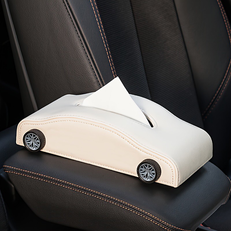 Sports Car Design Car Tissue Box- Premium Faux Leather Armrest Organizer with Sleek Black Brown Accents Durable Non- Fabric Fit for All Vehicles