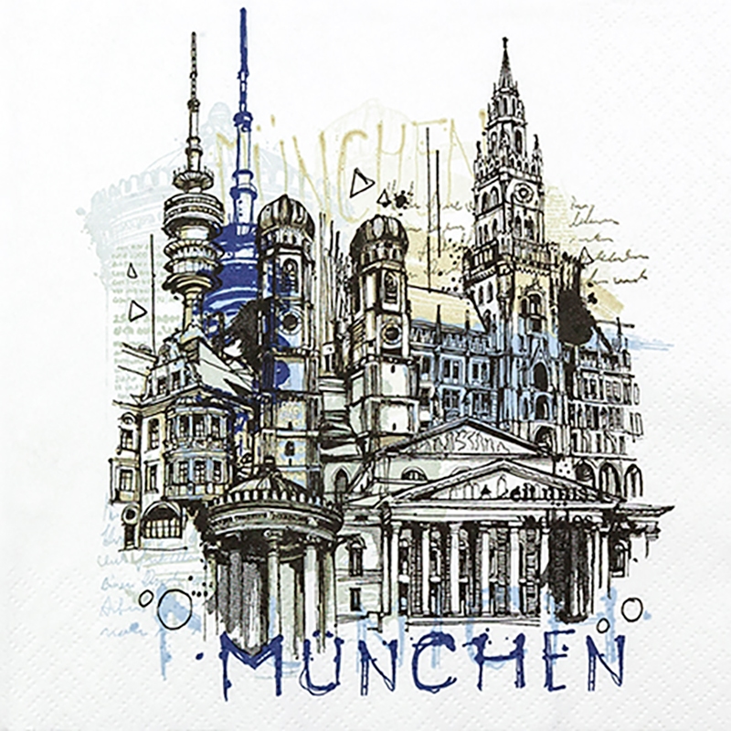 Home Fashion, Munich Graphic, Lunch-Servietten aufgefaltetes Maß 33 cm x 33 cm, im Viertelfalz, 20 Stück pro Pack