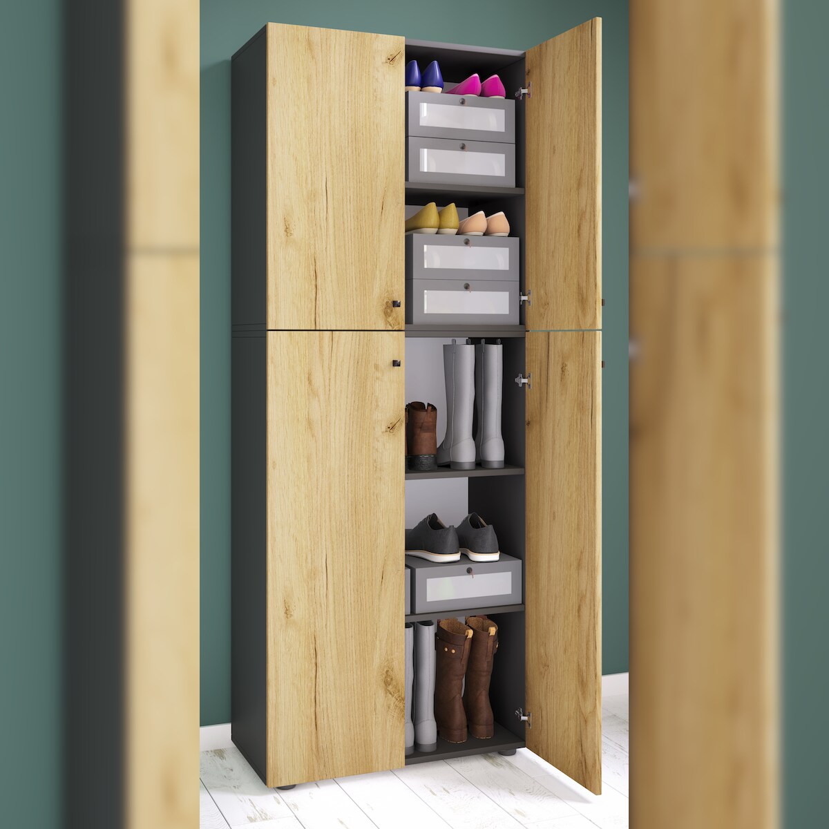 VCM Schuhschrank Lona Anthrazit / Honig-Eiche B. 70 x H. 184 x T. 40 cm