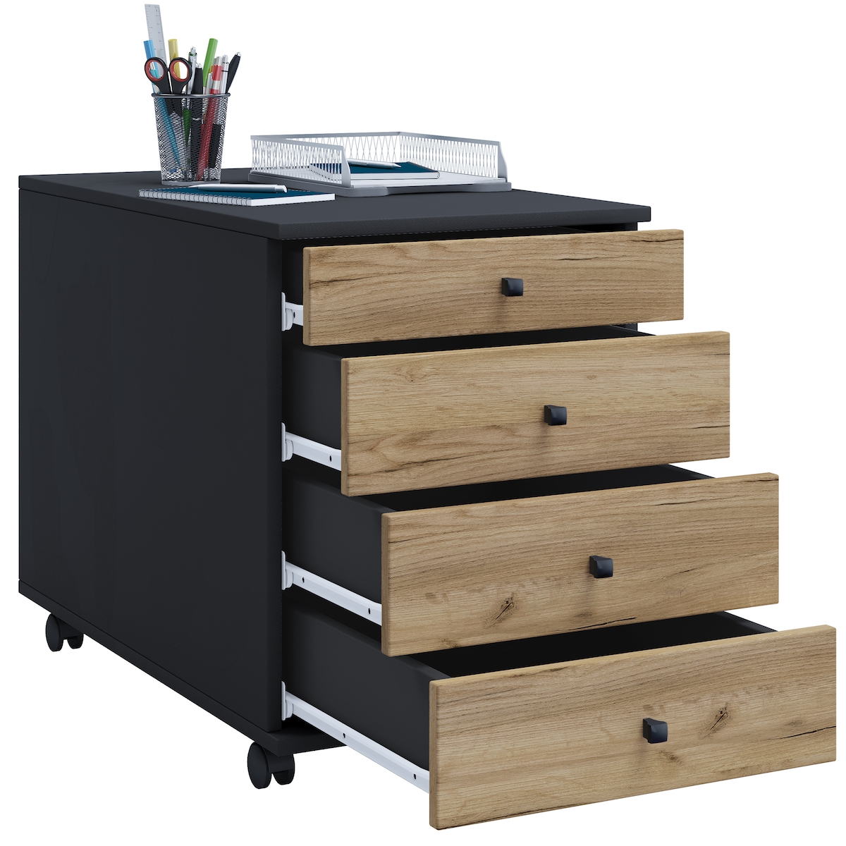 VCM Rollcontainer Lona Anthrazit / Honig-Eiche H. 57 x B. 42 x T. 50 cm