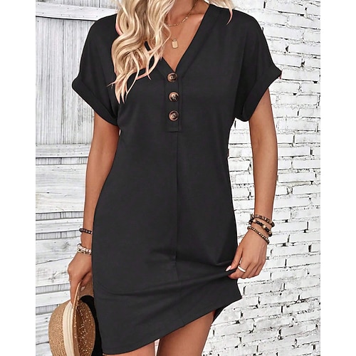 Per donna Mini Abito Vestito Casual Moderno Quotidiano All'aperto Vacanza Vestibilità regolare Semplice Manica Corta Scollo a V Magenta Verde acqua Nero Rosa Estate Primavera